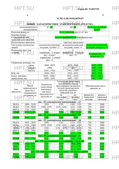 Тип ТС двигателя F2, коммерческое наименование - A7 DLZA 1890…2120 2470 1255 1305…1335…