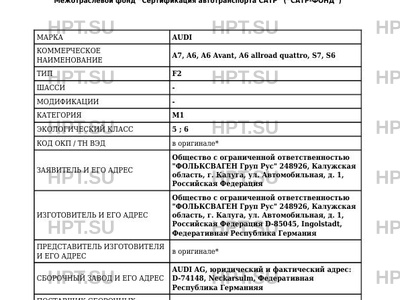 | Коммерческое наименование | A7, A6, A6 Avant, A6 allroad quattro, S7, S6 |