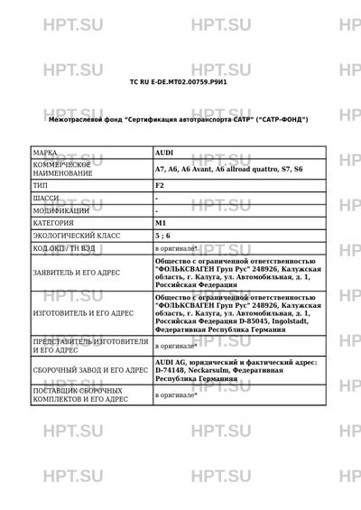 | Сборочный завод | AUDI AG, юридический и фактический адрес: D-74148, Neckarsulm, Федеративная Республика Германияя |