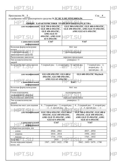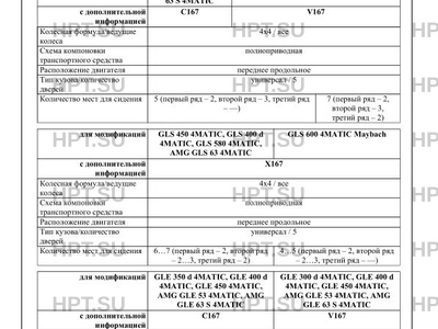 | Дополнительная информация | До 01 ноября 2019 г. наименование изготовителя и его адрес – Daimler AG, D-70546, Stuttgart, Германия. Идентификация изготовителя транспортного средства после указанного срока производится по международному идентификационному коду изготовителя в идентификационном номере транспортного средства. Для идентификации в Приложении №1 применяются следующие внутризаводские обозначения типа кузова в соответствии с описанием маркировки транспортного средства: V167 C167 X167 |