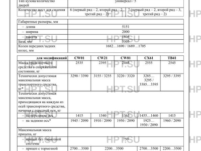 | Максимальная масса | 3290 / 3390 кг., 3155 / 3255 кг., 3220 / 3320 кг., 3285…3295 / 3385…3395 кг., 3295 / 3395 кг. |