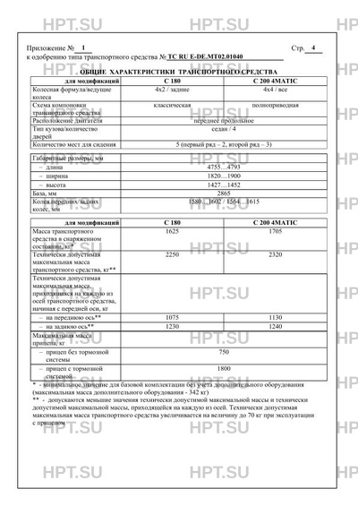 | Тип ТС | Маркировка модификаций: VIN: C 180 W1K2060411... C 200 4MATIC W1K2060431... |