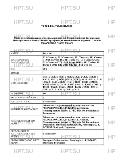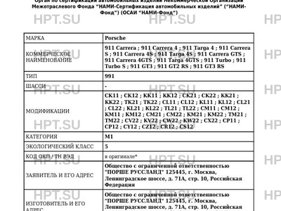 Коммерческое наименование 911 Carrera; 911 Carrera 4; 911 Targa 4; 911 Carrera S; 911 Carrera 4S; 911 Tar…