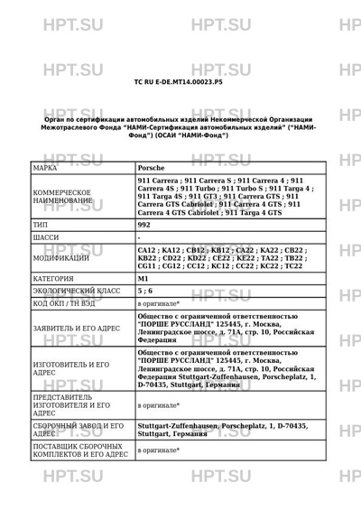 | Коммерческое наименование | 911 Carrera; 911 Carrera S; 911 Carrera 4; 911 Carrera 4S; 911 Turbo; 911 Turbo… |