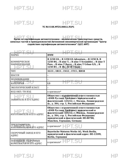 | Коммерческое наименование | R 1250 GS; R 1250 GS Adventure; R 1250 R, R 1250 RS; R nine T; R nine T Scrambl… |