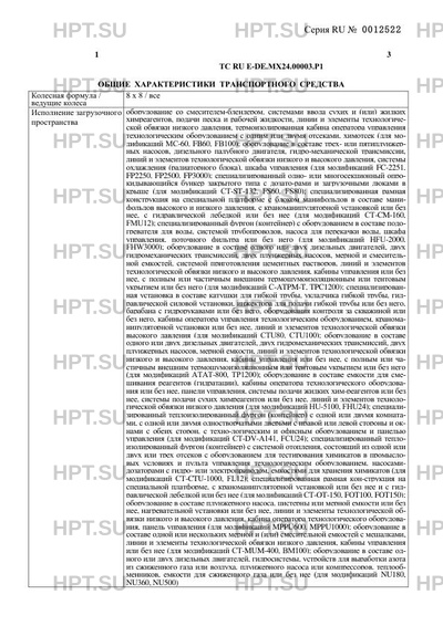 | Дополнительная информация | Транспортные средства не предназначены для перевозки опасных грузов и пищевых продуктов. Транспортные средства KATT/4 изготавливаются на базе шасси Mercedes-Benz Actros (модификации 4141AK, 4144AK, 4148AK, 4151AK, 4155AK, 4160AK). В случае фактического превышения значений параметров, указанных в приложении № 5 к техническому регламенту Таможенного союза «О безопасности колесных транспортных средств» (ТР ТС 018/2011), для передвижения транспортных средств по территории государств-членов Таможенного союза необходимо оформление специального разрешения. Данное одобрение типа транспортного средства является распространением одобрения типа транспортного средства ТС RU E-DE.АБ93.00014. |