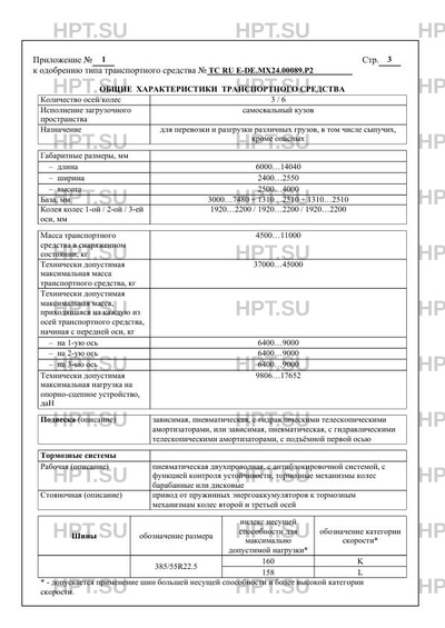 | Оборудование ТС | по заказу: противооткатные упоры; ящик для инструментов; держатель запасных колес; запасные колеса; огнетушители |