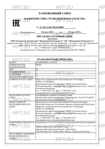 | Сборочный завод | TIRSAN TREYLER SAN. VE TIC. A.S., юридический и фактический адрес: Adliye Koyu, 1520 Nolu Sok. No:3 54580 Arifiye/ Sakarya, Турецкая Республика |