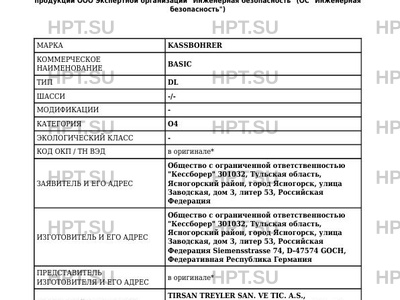 | Предприятие-изготовитель | Общество с ограниченной ответственностью "Кессборер" 301032, Тульская область, Ясногорский район, город Ясногорск, улица Заводская, дом 3, литер 53, Российская Федерация Siemensstrasse 74, D-47574 GOCH, Федеративная Республика Германия |