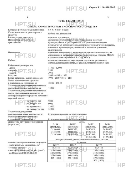 | Назначение | перевозка невзрывчатых компонентов взрывчатого вещества, их смешивания и заряжания скважин (транспортные средства MEMU в соответствии с пунктом 9.1.1.2 ДОПОГ) |