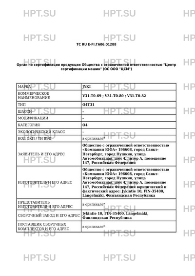 | Номер документа | ТС RU Е-FI.ГА06.01288 |