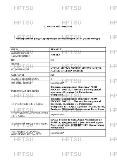 | Номер документа | ТС RU Е-FR.МТ02.00134.Р6 |