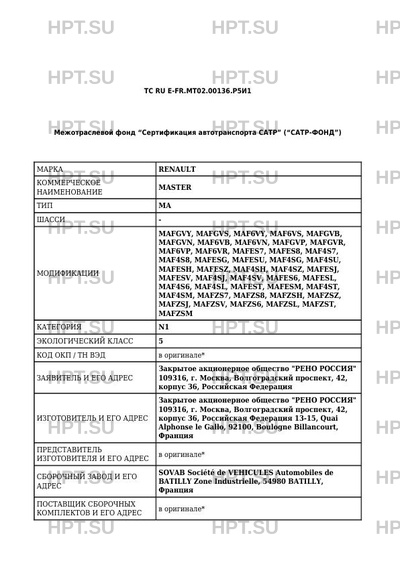 ТС RU E-FR.МТ02.00136.Р5И1