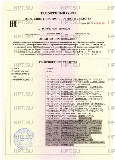 | Заявитель | Общество с ограниченной ответственностью "ПЕЖО СИТРОЕН РУС", ОГРН: 1047796295744, 101000, г. Москва, Чистопрудный бульвар, 17, стр. 1, Российская Федерация, тел.: (495) 981 14 10, факс: (495) 981 14 11, электронная почта: pcr-homologation@mpsa.com |