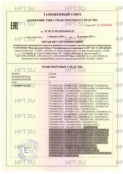 ОТТС ТС RU E-FR.МТ02.00163.Р1