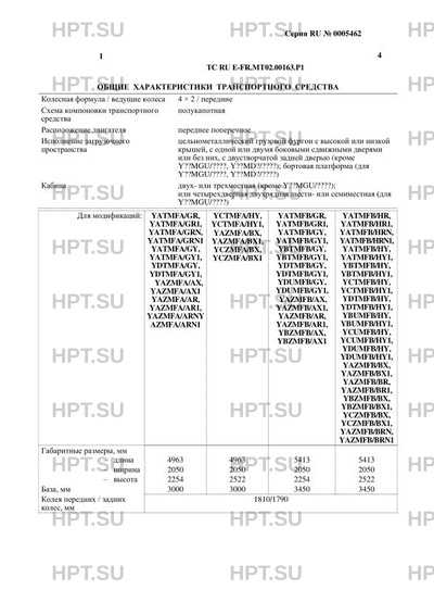 | Тип ТС | Транспортные средства модификаций Y?Z… относятся к экологическому классу 4. Транспортные средства модификаций Y?T…, Y?U… относятся к экологическому классу 5. Транспортные средства не предназначены для перевозки опасных грузов. |