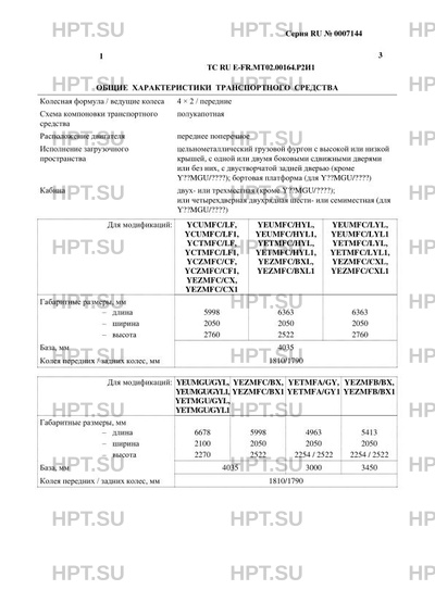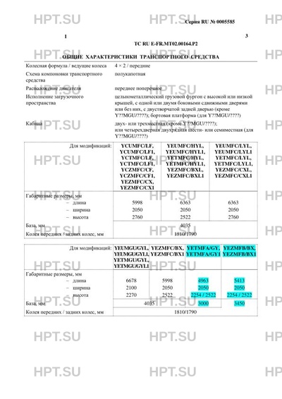 | Дополнительная информация | Транспортные средства модификаций Y?Z… относятся к экологическому классу 4. Транспортные средства модификаций Y?T…, Y?U… относятся к экологическому классу 5. |