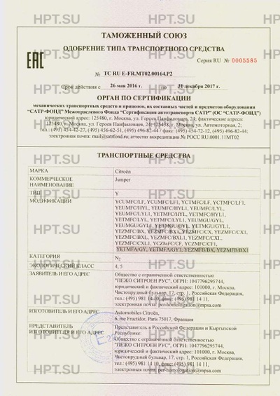 | Заявитель | Общество с ограниченной ответственностью "ПЕЖО СИТРОЕН РУС". 101000, г. Москва, Чистопрудный бульвар, 17, стр. 1, Российская Федерация. ОГРН: 1047796295744. Тел. (495) 981 14 10. Факс (495) 981 14 11. Email pcr-homologation@mpsa.com. |