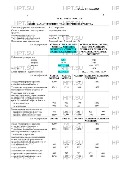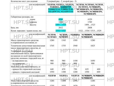 | Максимальная масса | Для модификаций: NC5FS0, NC5FS0/1: 1765 кг. Для модификаций NC5FS9, NC5FS9/1, NX5FS0: 1755 кг. Для модификаций NXRHHA: 1940 кг. Для модификаций NC9HD8/PS, NC9HD8/1PS, NC9HD8/2PS, NC9HR8/PS, NC9HR8/1PS, NC9HR8/2PS: 1825 кг. Для модификаций NX5FEA: 1835 кг. Для модификаций NX5FU8: 1820 кг. Для модификаций NXBHZT/S, NXBHZT/1S, NXBHZT/2S: 1890 кг. Для модификаций NXAHWT/S, NXAHWT/1S: 1975 кг. |