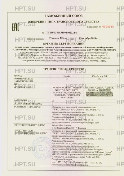 | Номер документа | ТС RU Е-FR.МТ02.00232.Р1 |