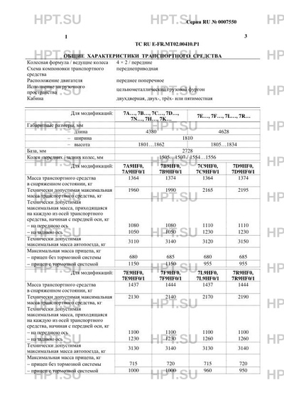 | Дополнительная информация | Транспортные средства модификаций 7ANFRC, 7BNFRC, 7CNFRC, 7DNFRC, 7NNFRC, 7A9HEC, 7C9HEC, 7H9HEC, 7E9HEC, 7L9HEC, 7A9HKC, 7C9HKC, 7H9HKC, 7HNFRC, 7KNFRC, 7K9HEC, 7K9HKC, 7F9HEC, 7R9HEC, 7B9HEC, 7D9HEC, 7ANFUC, 7BNFUC, 7CNFUC, 7DNFUC, 7HNFUC, 7KNFUC, 7ENFUC, 7FNFUC, 7LNFUC, 7RNFUC относятся к экологическому классу 4. Транспортные средства модификаций 7A9HF0, 7A9HF0/1, 7B9HF0, 7B9HF0/1, 7C9HF0, 7C9HF0/1, 7D9HF0, 7D9HF0/1, 7E9HF0, 7E9HF0/1, 7F9HF0, 7F9HF0/1, 7L9HF0, 7L9HF0/1, 7R9HF0, 7R9HF0/1, 7A5FKO, 7B5FKO, 7C5FKO, 7D5FKO, 7H5FKO относятся к экологическому классу 5. |