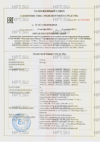 Полное ОТТС ТС RU E-FR.МТ02.00410