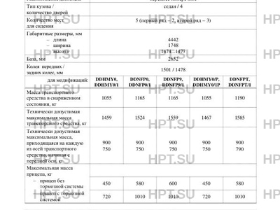 | ДВС | Для модификаций DDHMY0, DDHMY0/1, DDHMY0/P, DDHMY0/1P: PSA, HMY (HM02), четырехтактный, с искровым зажиганием. Для модификаций DDNFP0, DDNFP0/1, DDNFP9, DDNFP9/1, DDNFPT, DDNFPT/1: PSA, NFP, четырехтактный, с искровым зажиганием. |
