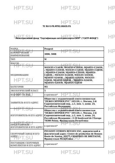 | Тип ТС | Коммерческое наименование Модификации 3008 M45GXV-C1A030, M45GXV-C1E030, MJAHXV-C2A030, MJAHXV-C2E030, M45GXV-C1J030, MJAHXV-C2J030, MJAHXN-C2A030, MJAHXN-C2E030, MJAHXN-C2J030 5008 M45GXV-S1A030, M45GXV-S1E030, MJAHXV-S2A030, MJAHXV-S2E030, M45GXV-S1J030, MJAHXV-S2J030, MJAHXN-S2A030, MJAHXN-S2E030, MJAHXN-S2J030 |