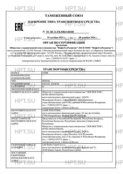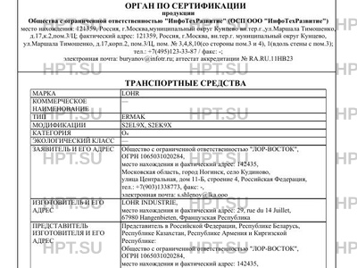 Предприятие-изготовитель LOHR INDUSTRIE, место нахождения и фактический адрес: 29, rue du 14 Juillet, 67980 Hangenbieten, Французская Республика