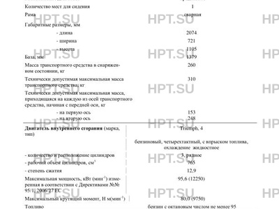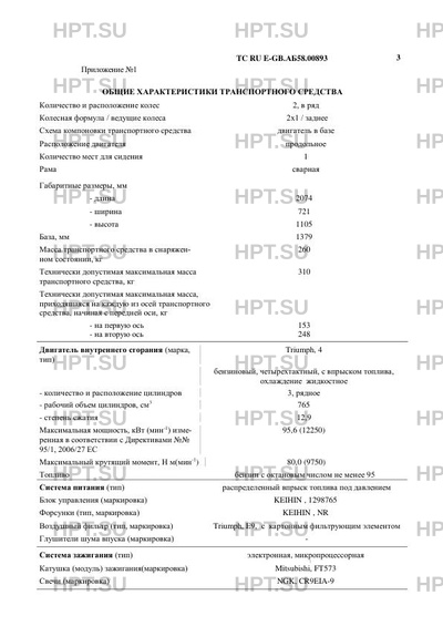 | ДВС | Triumph, 4 бензиновый, четырехтактный, с впрыском топлива, охлаждение жидкостное |