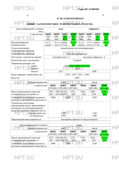 | Модификации | с двигателем 306PS, с двигателем 508PS;, с кузовом типа купе, с кузовом типа кабриолет;, с задним приводом, с полным приводом |