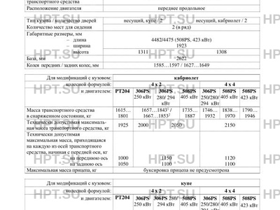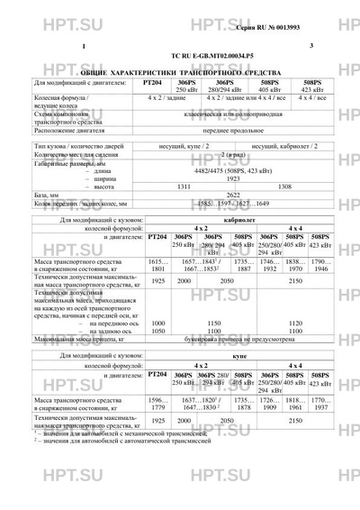 | Тип ТС | Транспортные средства не предназначены для коммерческих перевозок пассажиров. Обозначения мощности двигателей, указанные в сопроводительных документах на автомобиль: двигатель обозначение мощность, кВт 306PS 340PS 250 306PS 380PS 280 306PS 400PS 294 508PS 550PS 405 508PS 575PS 423 |