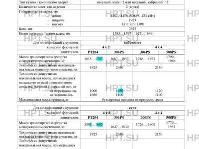 | Модификации | с двигателем 306PS, с двигателем 508PS, с двигателем PT204;, с кузовом типа купе, с кузовом типа кабриолет;, с задним приводом, с полным приводом |