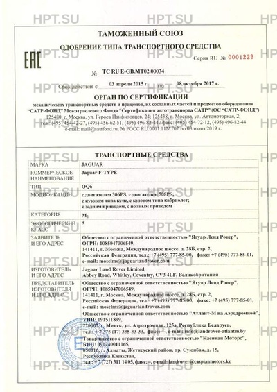 Коммерческое наименование Jaguar F-TYPE