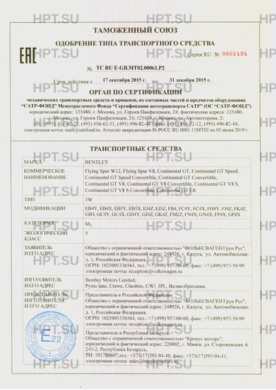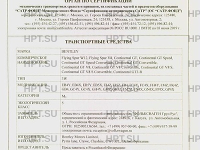 | Предприятие-изготовитель | Bentley Motors Limited, Pyms lane, Crewe, Cheshire, CW1 3PL, Великобритания |