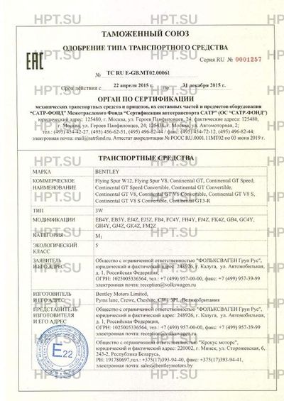 | Предприятие-изготовитель | Bentley Motors Limited, Pyms lane, Crewe, Cheshire, CW1 3PL, Великобритания |
