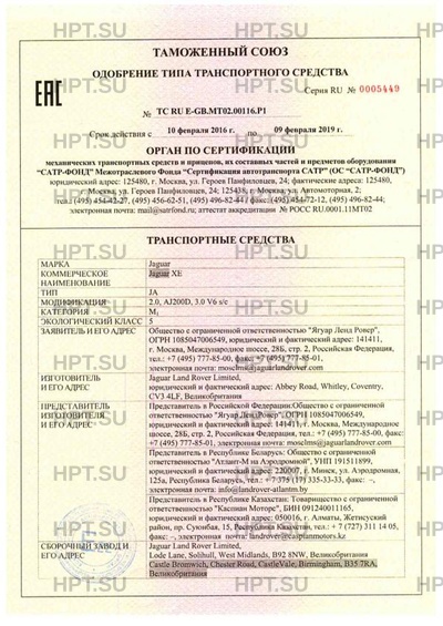 | Коммерческое наименование | Jaguar XE |