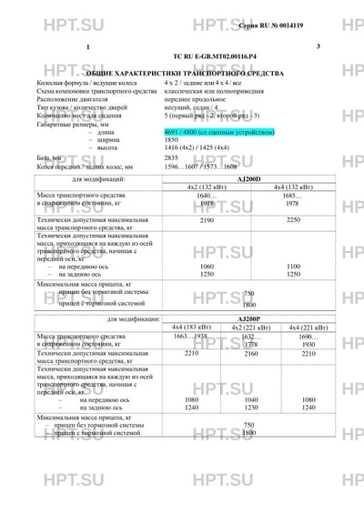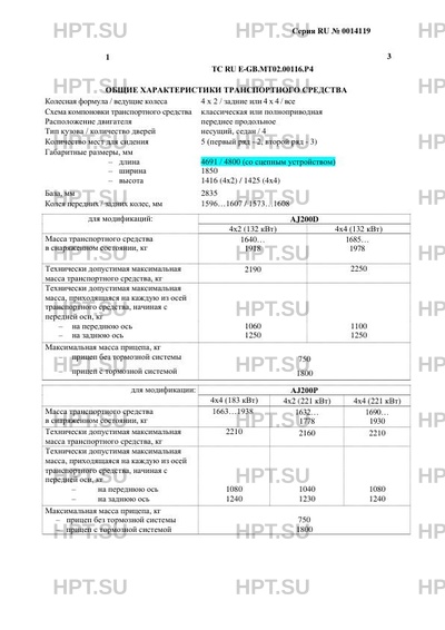 Тип ТС Транспортные средства не предназначены для коммерческих перевозок пассажиров. Значение кода мощности двигателей 204DT и PT204, указанного в сопроводительных документах на автомобиль: Двигатель Код мощности двигателя Мощность, кВт 204DT 180PS 132 PT204 249PS 183 PT204 300PS 221