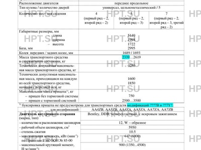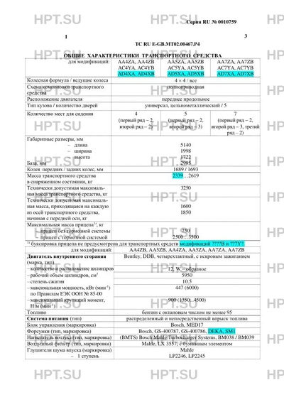 | Коммерческое наименование | Bentayga W12, Bentayga V8 Diesel, Bentayga V8 |