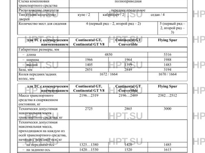 | Тип ТС | Коммерческое наименование Экологический класс Continental GT, Continental GT Convertible, Flying Spur 6 Continental GT V8 5 |