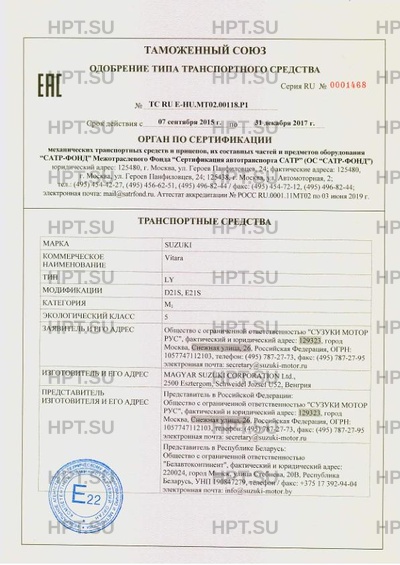 | Номер документа | ТС RU E-HU.МТ02.00118.Р1 |