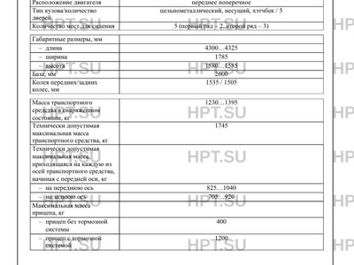 Характеристики автомобиля