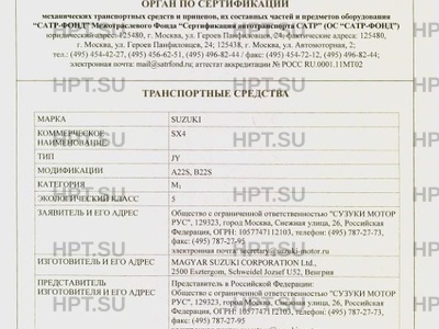 | Заявитель | Общество с ограниченной ответственностью "СУЗУКИ МОТОР РУС". 129323, город Москва, Снежная улица, 26, Российская Федерация. ОГРН: 1057747112103. Тел. (495) 787-27-73. Факс (495) 787-27-95. Email secretary@suzuki-motor.ru. |