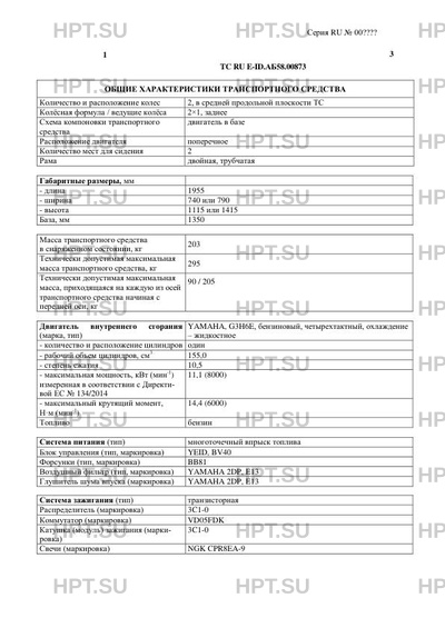 | Заявитель | Общество с ограниченной ответственностью "Ямаха Мотор Си-Ай-Эс". 125167, город Москва, Ленинградский проспект, дом 37А, корпус 4, Российская Федерация. ОГРН: 1057746817061. Тел. 8-495-225-94-81. Факс 8-495-225-94-82. Email hg@yamaha-motor.ru. |