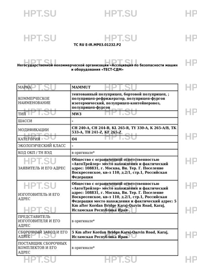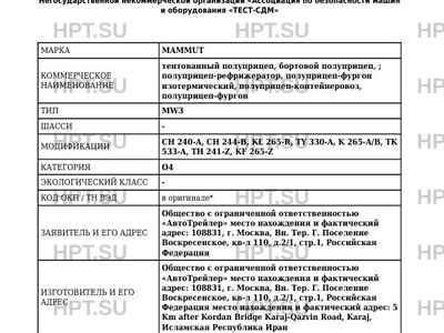 | Заявитель | Общество с ограниченной ответственностью "АвтоТрейлер" место нахождения и фактический адрес: 108831, г. Москва, Вн. Тер. Г. Поселение Воскресенское, кв-л 110, д.2/1, стр.1, Российская Федерация |