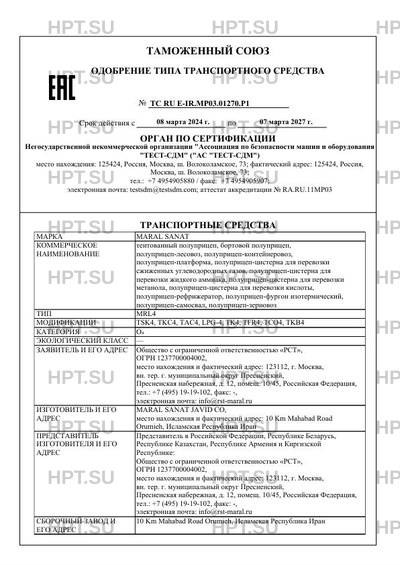 ТС RU E-IR.МР03.01270.Р1