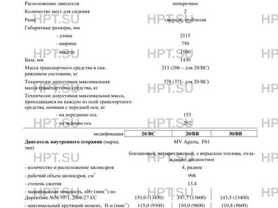 | Марка ТС | MV AGUSTA |