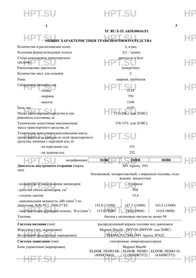 | Дополнительная информация | Мотоцикл модификации 20/BВ имеет коммерческое наименование F4 RR ABS, модификации 30/ВВ — коммерческое наименование F4 R ABS, модификации 20/BС — коммерческое наименование F4 RC. Данное одобрение типа является распространением ОТТС № TC RU E-IT.МТ20.00279. |
