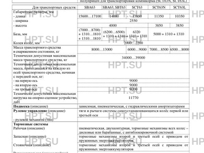 | Исполнение загрузочного пространства | специализированный многоярусный фургон (SBA63, SBT63); фургон общего назначения или фургон с тентом (SCT63); полуприцеп-цистерна (SCT63N, SCT63L) |