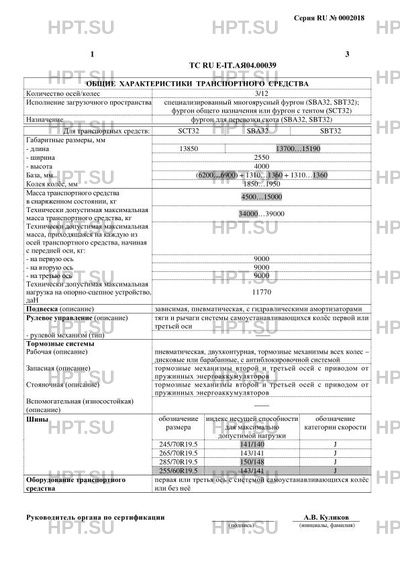 | Дополнительная информация | Данное «одобрение типа транспортного средства» является распространением «одобрения типа транспортного средства» № РОСС IT.АЯ04.Е01388. В случае несоответствия параметров транспортных средств значениям, установленным в Приложении № 5 к техническому регламенту Таможенного союза «О безопасности колесных транспортных средств», для передвижения транспортных средств по территории государств – членов Таможенного союза необходимо оформление специального разрешения. |